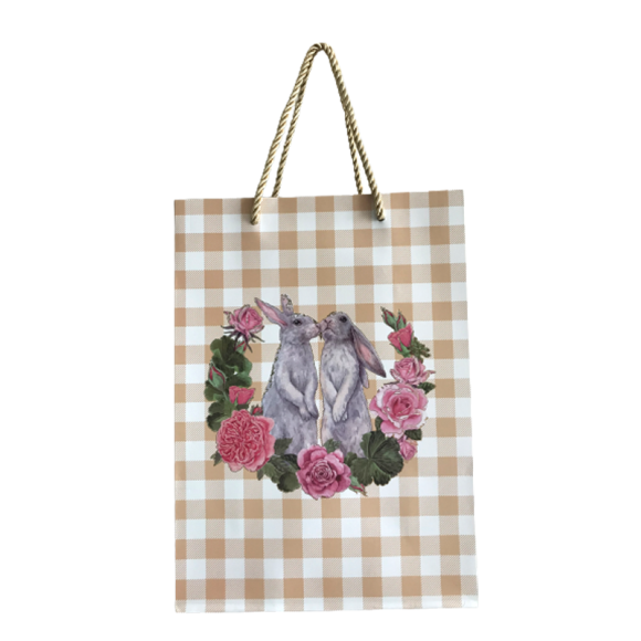 Com ilustração de Páscoa, essa linda sacola é resistente e tem ótimo acabamento.