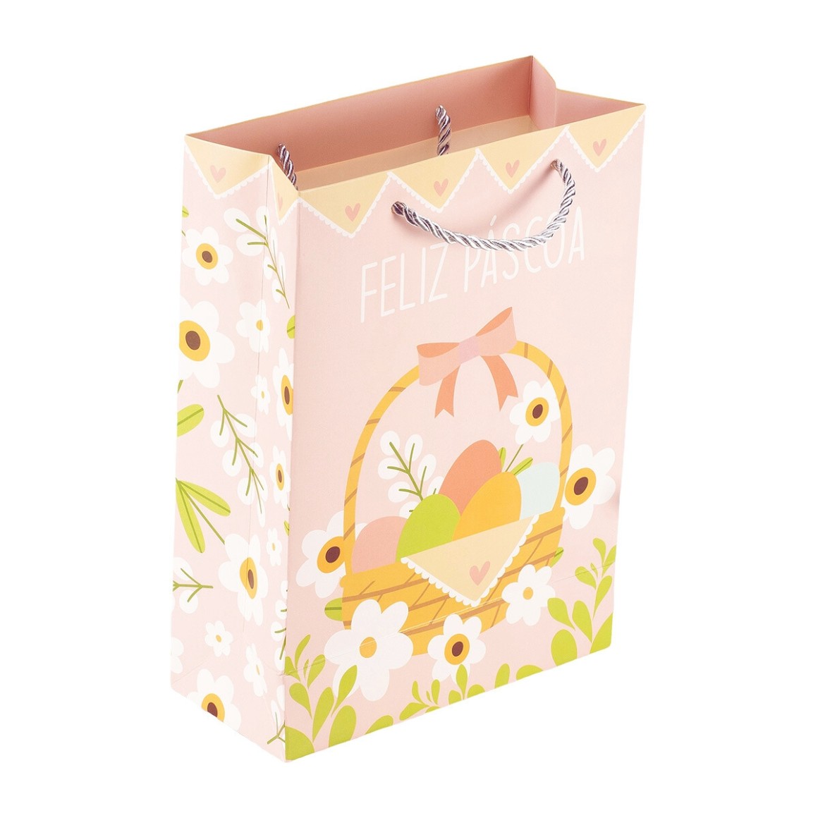 Com ilustração de Páscoa, essa linda sacola é resistente e tem ótimo acabamento.